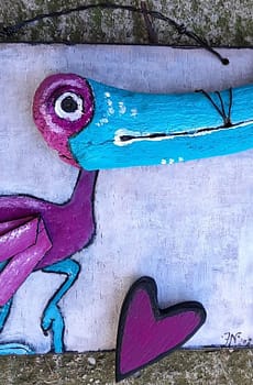 Riba iz naplavin nabranih ob Soči, gumbov in drugih ostankov lesa.